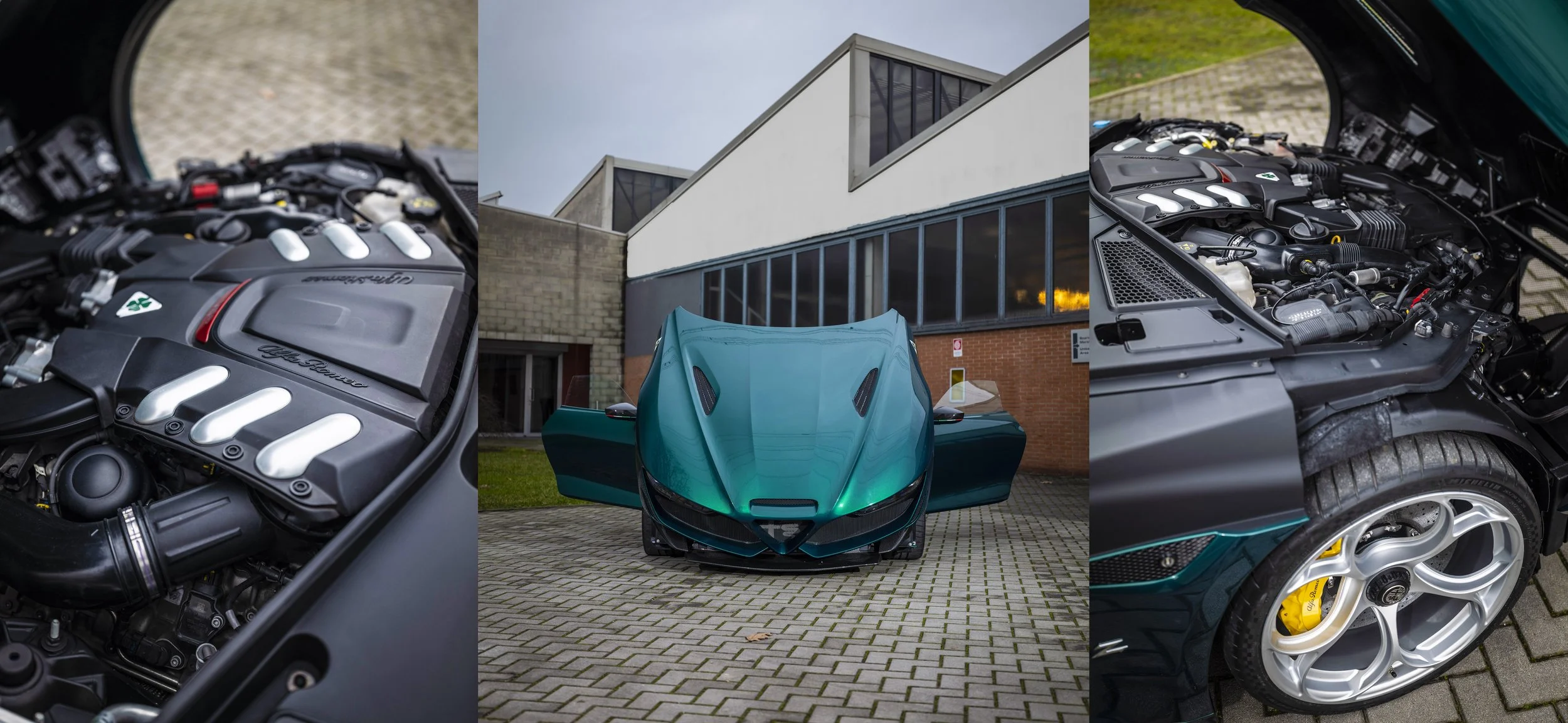 And if the Centro Stile is not so physically close anymore, it doesn’t mean that the relationship has gone any colder: in fact, the Giulia SWB is the result of a close collaboration teamwork between Zagato’s Norihiko Harada (for more than 20 years now in Italy) and the Centro Stile team, recently under Alejandro Mesonero’s leadership. The clear-cut headlights are those of the Tonale, and be it for their 3 + 3 theme, be it for their low positioning, they seem like a perfect fit, designed specifically for this car. The protruding scudetto is also reminiscent of the S.Z. in the way it’s incorporated in the long bonnet, only this time the entire frontal part, grilles, scudetto and headlights are lifting with the bonnet in a very spectacular, Transformer like fashion, leaving naked almost half of the car’s length and the glorious Quadrifoglio engine in plain view to examine. Few other current supercars are displaying this arresting trick of exhibition, and the one other car that comes to mind from Alfa’s recent history with the same revealing feature is the 8C Competizione prototype. Knowing the 8C prototype (presented 20 years ago at the IAA in Frankfurt) was built in the era of closest collaboration between the Centro Stile design studio in Arese and Zagato’s workshop in Rho, one may suspect the latter’s hand might have been involved, even if the final product didn’t bear its signature. The doors of the Giulia SWB open up at a push of a small button; with no visible handles interrupting the sideline, revealing the familiar Giulia interior, with its visually pleasant integrated infotainment system. The carbon seats have beer upholstered in black leather with green inserts matching the green paintwork, and so are the door panels and the upper dash. Moving to the back side, perhaps the most surprising part of the car considering the current Alfa design language, but so topically Zagato: the Kamm Tail has a sort of roundness to it, as seen on the TZ3s, and the thin rear bar of light running the entire contour is a clear recall to the original clear cut of the 2600 SZ. This thin red light is perfectly integrated, while the general assembly and build quality, with millimetric panel gaps, seems more characteristic of a laser guided robotic assembly than of a traditional handmade process - a modern take on Enzo Ferrari’s famous esteemed aknowledgement: “all’Alfa sanno fare i guanti alle mosche”. Moving back a few steps and admiring it from a distance the Giulia SWB looks like a nicely sculptured marble work of art. Its deep, dark green colour has blue-ish, almost turquoise finishes. It’s January and it’s cold, but it feels so Mediterranean!