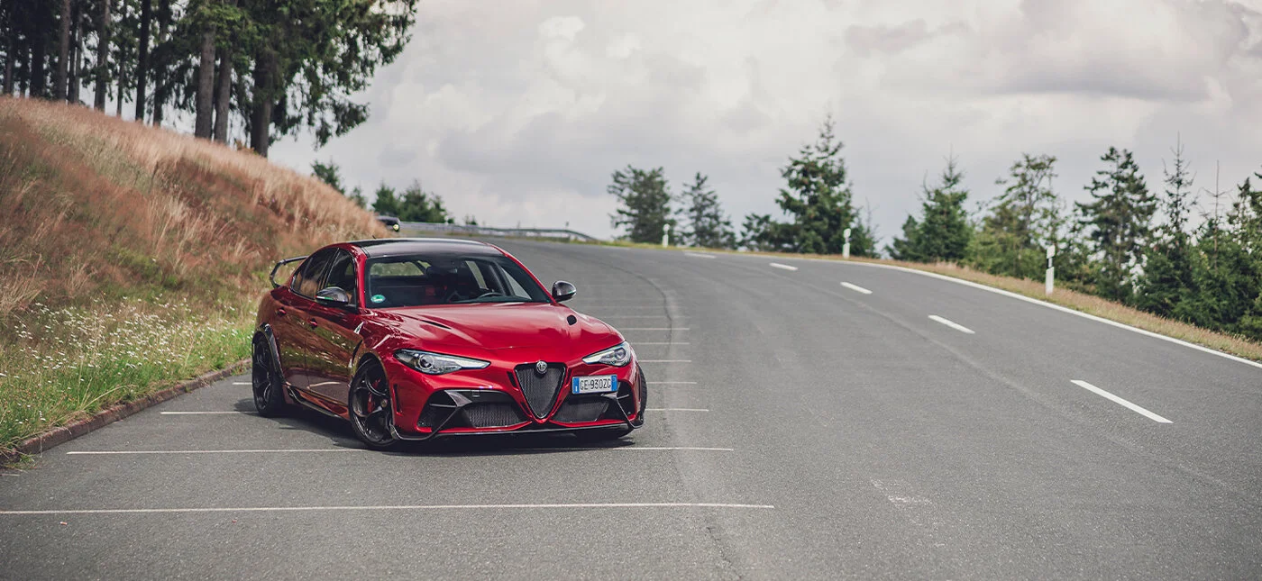 So we meet again two weeks later, on a rainy grey day on the proving grounds of Pferdsfeld, Western Germany. During a break of the Pista e Piloti races, where several GTA and GTAm are used as pace cars, I can experience the GTAm on a racetrack, again happy me behind the steering wheel. Front splitter is extended to Race usage and now it’s about to get real, also because the surface is a little wet and the track has changing surfaces. It’s a nice 4,2 km track with some chicanes, a nice decent steep curve and a long straight where it is easily possible to go past 200km/h with the GTAm’s 540HP and 600nm. And this time the carbon ceramic brakes are doing their thing extraordinary. Such incrediblee direct feedback when breaking, more informative than the one you get from the carbon breaks in the Quadrifoglio. Fortunately I had the direct comparison on that same track, as my next test drive 5 minutes later was with a Quadrifoglio on carbon breaks. But not only that, driving both cars in Dynamic mode they behaved so differently in almost every way - Race mode wasn’t used due to the weather conditions. They were like two totally different cars.