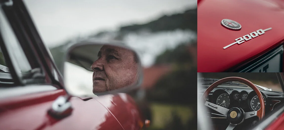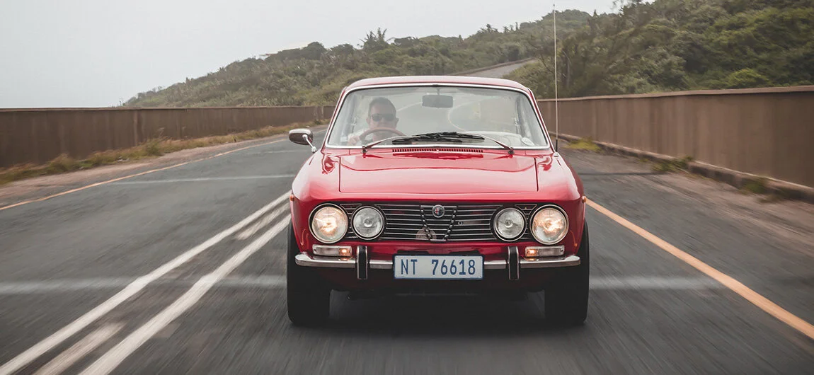 “That 2 litre is damn impressive” I cheekily muttered to the driver of our chase car, hinting for him to close the gap between us and Andre. “My foot is flat” he responded as we struggled to keep up. It was still relatively early and there were only a handful of other cars making use of the vacant roads. It was quite impossible not to find enjoyment in the moment. The GTV was coming alive around the undulating terrain and sweeping bends of the subtropical surrounds. I felt teleported into that era; chasing down a nimble GTV and reliving the pinnacle of these cars. There is joy in driving a classic and being reunited with memories from so long ago, and nostalgia drives us to keep these memories alive, by attempting to teleport ourselves to the time and place we first encountered that excitement. Out of his impressive Alfa Romeo collection, both past and present, including a 1977 2000 Spider, 2000 156 V6 and two unrestored 116 GTV’6, this is the one that evokes the most joy for Andre - and it is easy to understand why. From the allure of its front grille, with the scudetto embossed on the horizontal chrome slats, to its impressive handling around bends and roundabouts, this car is the embodiment of Alfa Romeo at that time - sleek, agile and exciting.