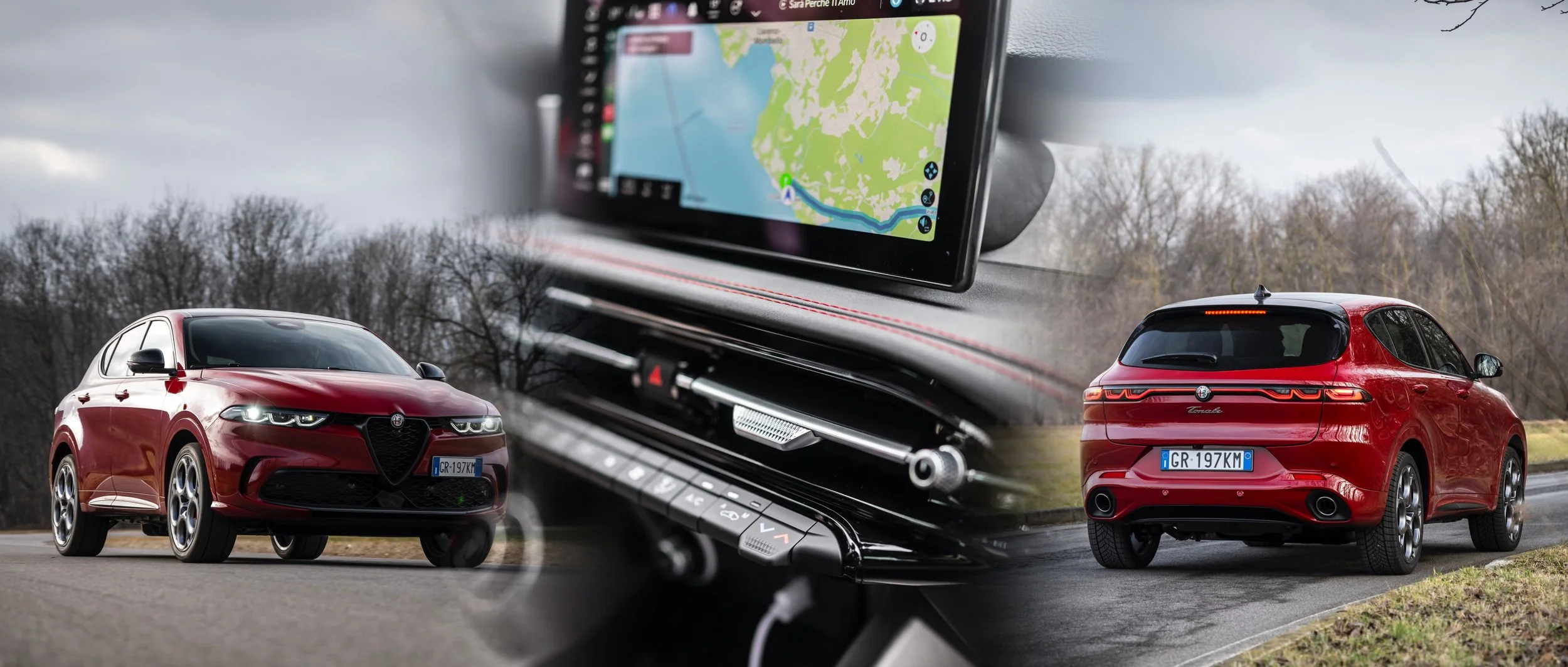 Along with the other pieces and bits signalling this special edition that are common with the Giulia and Stelvio (one of three Italian flag body colours with contrasting black roof, specific interior badgest and stitchings) the Tonale Tributo Italiano (available with the 1.3 PHEV 280 hp I’m testing and also the 1.5 160 HP MHEV) brings out perhaps more significant novelties: the black roof is masking a panoramic soon-roof that previously wasn’t available, while for the first time the entire body kit is matching the main body colour (previously part of the rear bumper, wheel arches and side skirts were black). At the interior a new trim element for the Tonale is the carbon look dash fascia. In my opinion the Tonale is by far the best looking car in its segment: it’s sexy and aggressive at the same time with its 3 plus 3 style headlights, and from certain eagles, mostly rear quarter, the general allure reminds me of the bigger Stelvio. It definitely has charisma seen in day to day traffic, and it was a pleasant surprise to see quite a number of Tonales on the roads linking Milano to Como and Lago Maggiore. So how does it drive, ask the alfisti? A hard to please bunch as my fellow Alfa owners (maybe because the Giulia & Stelvio have raised the bad so high) should rest assured the Tonale feels like an Alfa should. With its 280 HP (180 HP from the petrol engine to the front axle and 100 from the electric one to the rear) the Tonale Q4 is no slow coach. The batteries and extra transmission parts bring the weight up to approximately 1900 kg, but the Tonale can still sprint to 100 km/h in a little over 6 seconds. And the way the electric engine intervenes to give its extra push is almost unnoticeable. I need to pay attention to the road, the car’s computers are doing the rest. Of course, the dash mounted 10 inch touch screen can give out all the informations in real time, as to where the power is produced, delivered or even recovered - an ace up the Tonale’s sleeve is that under certain conditions it can regenerate power and effectively recharge the batteries, so that up to 80 km could be driven on electric power alone.