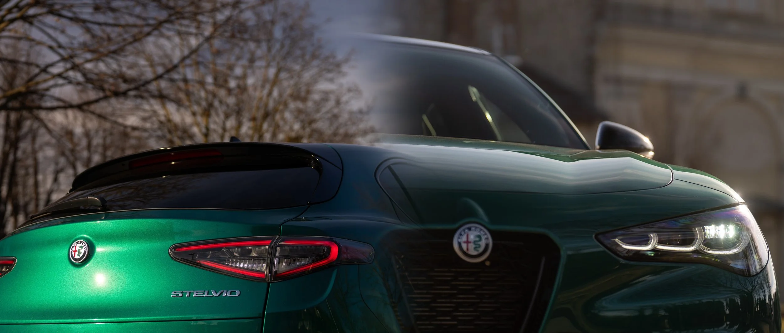 Green Stelvio shot by Sebastian Iordache, white Giulia and red Tonale shot by Luca Danilo Orsi.
