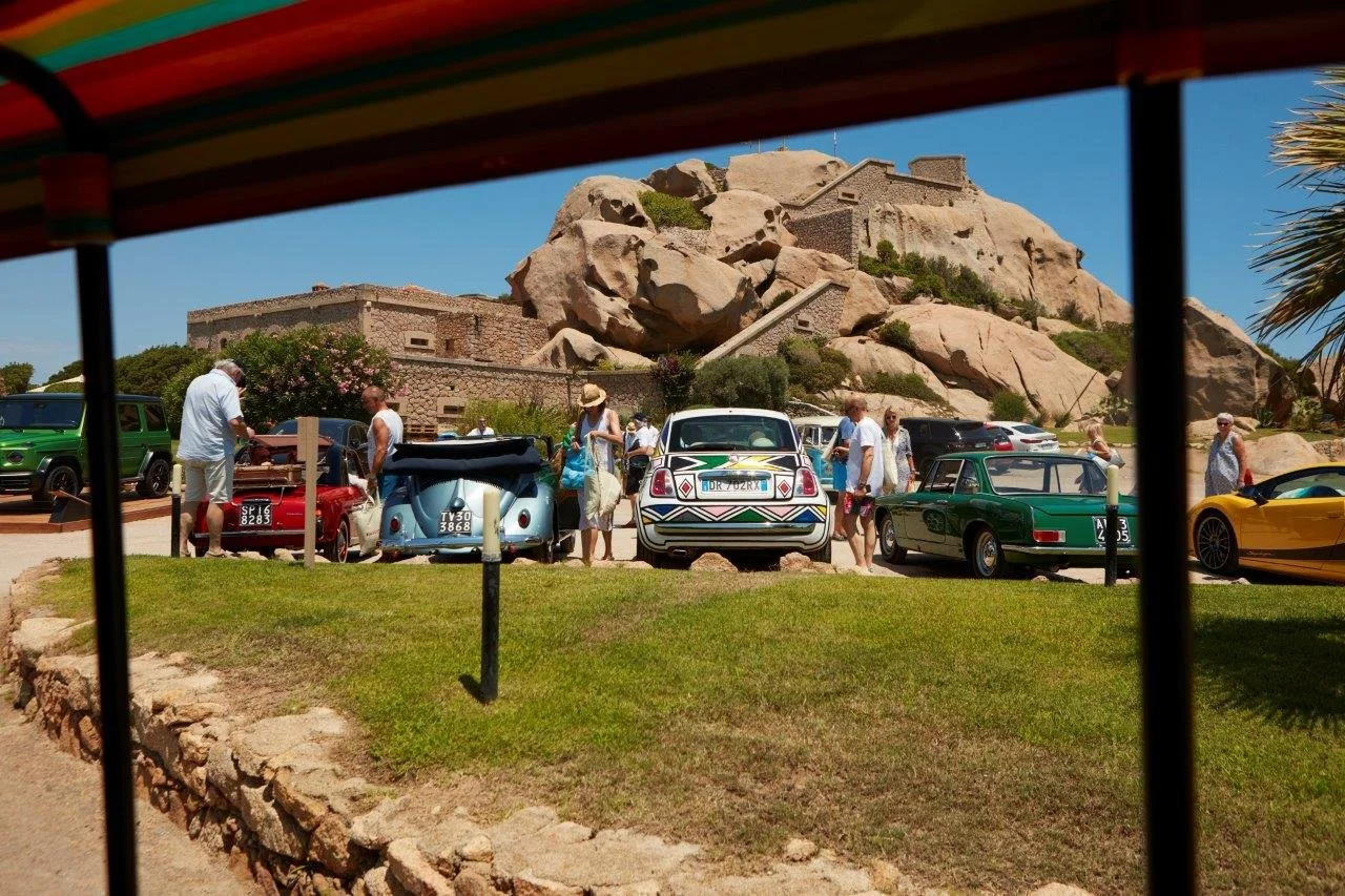 It all started at the Poltu Quatu village, the hidden gem of Costa Smeralda nestled at the far end of a natural marina - the second best way to arrive here is of course aboard a yacht. But I’ve taken the first best option - onboard a car, and like myself 52 crews of the other cars entering this glamorous concours d’elegance. Mixing colours and shapes, and even if almost the whole spectrum known to the human eye is present in front of me, there’s no single fizzy hue that strikes out; they all complement each other. Or is it the Sardinian light? And it’s the same for the people I'm chatting with, coming from different walks of life and all 4 corners of the world, all made to feel welcomed by Simone Bertolero, the heart, brain and sometimes even muscle of the event. His immediate family is getting a big extension for the weekend, and we’re connected by a petrol fuelled liaison.